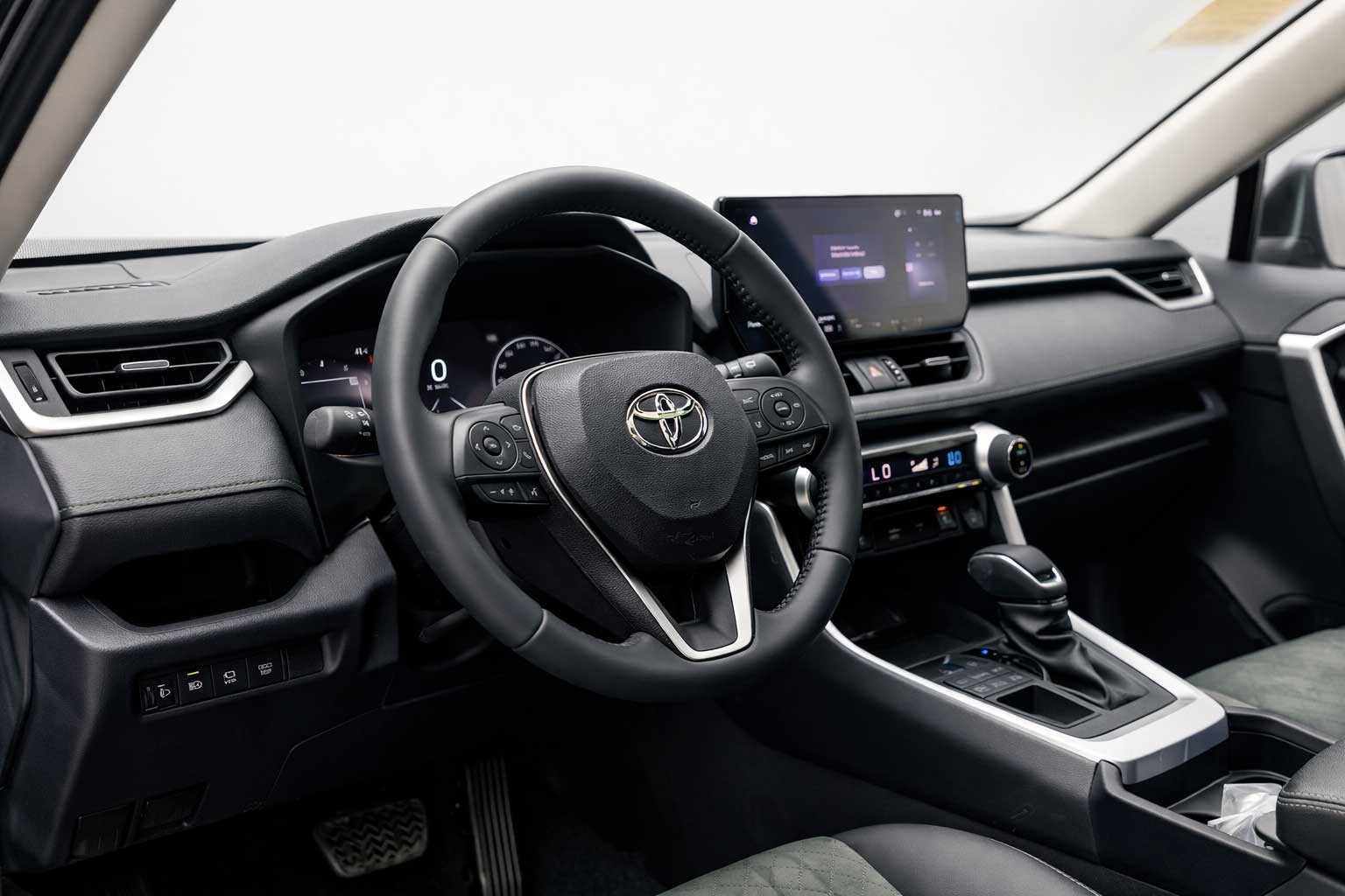کابین تویوتا RAV4 Adventure Plus با تمرکز بر راحتی، تکنولوژی و حس مدرن طراحی شده است. استفاده از متریال باکیفیت، دوختهای ظریف صندلیها و طراحی کاربردی داشبورد، فضایی دلنشین و حرفهای ایجاد کرده است.